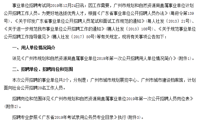 广州市规划和自然资源局直属事业单位第一次招聘事业编制人员公告