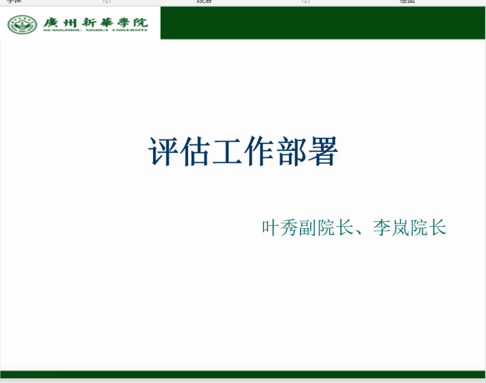 叶秀副院长向学院全体教职工传达了学校评估工作会议精神以及对迎评工作作出了要求:强调教师要加强课堂纪律管理,做好充分准备以最好的精神面貌迎接专家组的听课、访谈和走访。