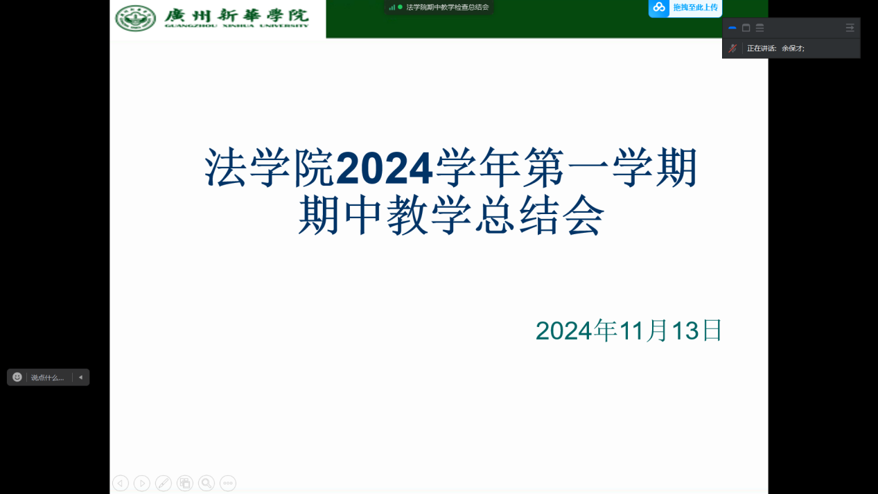 2024年11月13日晚上,3044永利通过网络会议方式顺利召开本学期期中教学检查总结会。3044永利院长李正华、执行院长李岚、分管教学副院长叶秀、副院长陈华丽以及学院全体教职工参加了本次会议。本次会议由刘旖旎老师主持。本次会议分为两个议程:一是对学院期中教学检查情况总结汇报;二是对评估专家进校的工作部署。