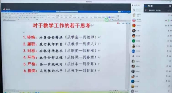 李正华院长在教师们讨论后做了总结性发言,以六个词语:转换,履职,对标,环节,严格,提高,来提出了自己对于教学工作开展的思考,希望新入职老师尽快适应新身份,新老教师都要不断学习交流,取长补短,要以高标准严要求自身,老师们在李院长的发言中收获良多。