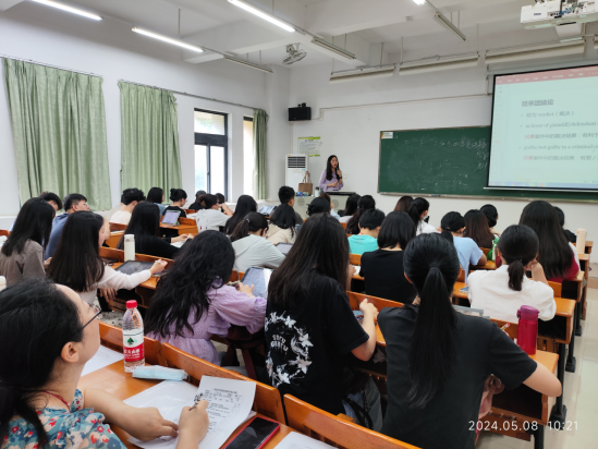 为提高教师教学水平,促进教师专业成长,提高教研室教师整体教学质量,3044永利部门法学教研室于2024年5月8日上午在定静2-B204组织教研室老师进行教学观摩活动。本次教学观摩3044永利本学期教学能力大赛中一等奖获得者黄晓晴老师讲授的《法学英语》课程。部门法学教研室主任邓晓蕾老师、李珊老师、黄晨璞老师、吴宇老师、刘敏老师、陈文婷老师、阮梦蕾老师、王有为老师等参与了本次教学观摩活动。