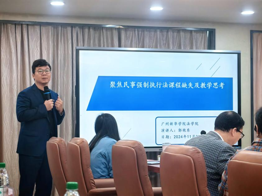 在此环节中,郭艳东老师以“民办高校法学教育实践教学模式创新——聚焦民事强制执行法课程缺失”为主题进行了一场引人深思的交流与分享。他凭借自身在法律实践领域的丰富经验,精准地聚焦于司法实践中普遍存在的“执行难”问题。他指出,尽管民事强制执行法在司法实务中占据着举足轻重的地位,但当前高校法学教育对于这一领域的关注却显得不足。他强调,民事强制执行法不仅是法律体系中的重要组成部分,更是确保司法公正得以实现的关键环节。因此,郭老师提出了一个切实可行的解决方案:在高校法学教育中增设“民事强制执行法”课程。这一措施旨在强化法学课程的实践性,培养学生解决实际问题的能力,从而为社会培养和输送能够直面并解决实际法律挑战的实践性法学人才。