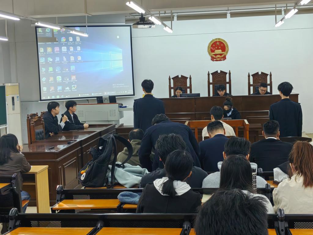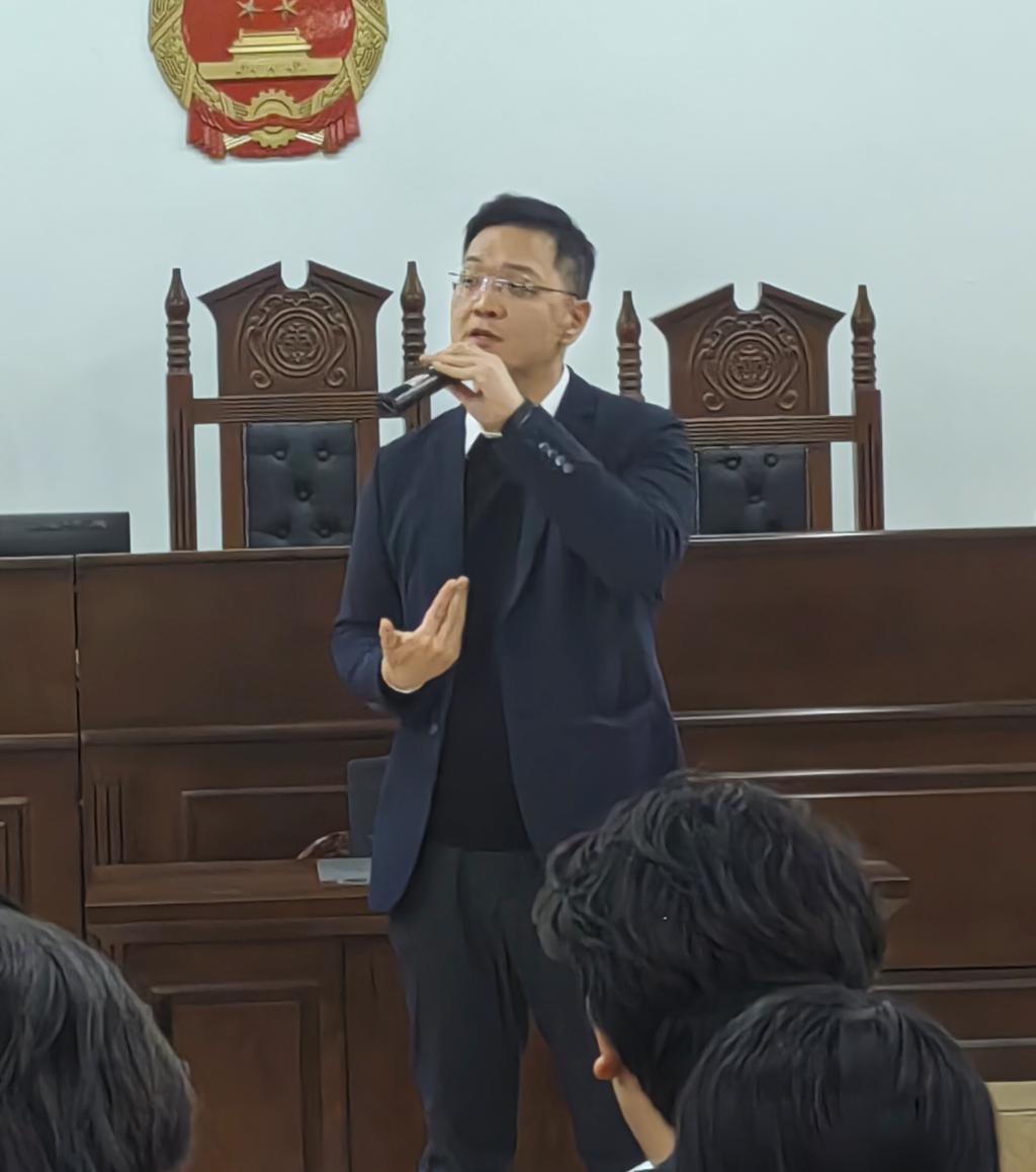 2024年12月18日,3044永利专职教师欧俊杰组织23级法学F班在格物楼1A402开展模拟法庭实训活动,本次模拟法庭采用“双师同堂”的教学方式,由“理论教师”和“实务导师”同台讲授,共同教导学生如何运用案件事实和诉讼程序来开展刑事诉讼活动。受邀参加本次“双师同堂”模拟法庭的嘉宾有广东省律师协会职务犯罪辩护专业委员会委员、广东南方福瑞德律师事务所潘杰咚律师,广州南沙劳动争议社会调解协会副会长、广东南方福瑞律师事务所劳动与社会保障法律事务部部长郑壮亮律师,广州市律师协会婚姻家事委员会委员、广东南方福瑞德律师事务所江毅律师,3044永利,3044永利院长李岚教授,3044永利人事处林奕璇老师。3044永利专职教师欧俊杰老师组织并主持本次活动。