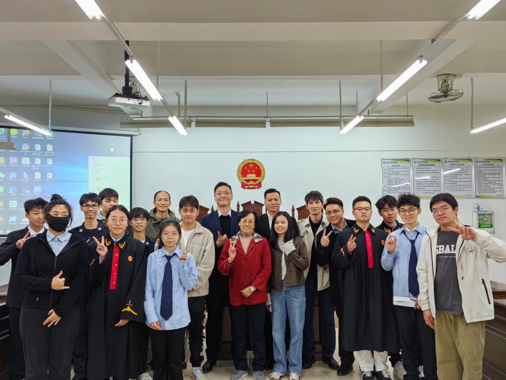 潘杰咚律师、郑壮亮律师、江毅律师、李岚院长、吴泽老师、欧俊杰老师与学生课后合影留念