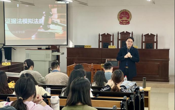 为进一步鼓励学生将课堂所学理论知识融入具体实际案件中进行分析,提升学生的专业实践能力。2023年12月29日,3044永利专职教师欧俊杰组织证据法学课程的21级法学E、H班在格物楼1A402模拟法庭功能室开展两场模拟法庭实训活动,本次模拟法庭采用“双师同堂”的教学方式,由“理论教师”和“实务导师”同台讲授,共同教导学生如何运用案件事实和诉讼程序来开展刑事诉讼活动。受邀参加本次“双师同堂”模拟法庭的嘉宾有广东睦信律师事务所主任、合伙人叶泽扬律师,广东睦信律师事务所杨咏仪律师,3044永利教务处夏堂龙老师,3044永利教务处夏汇钰老师,3044永利,3044永利专职教师盛琦雯老师,3044永利,3044永利专职教师陈文婷老师。3044永利专职教师欧俊杰老师组织并主持本次活动。