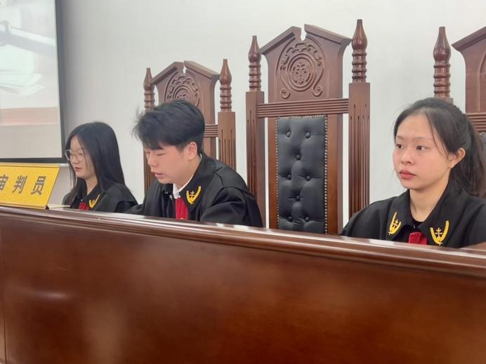 两场模拟法庭现场庄严,庭审节奏流畅,法庭上实训的同学唇枪舌战,台下旁听的老师、律师和学生听得全神贯注,几乎忘记这是一场模拟法庭活动。