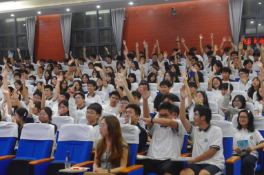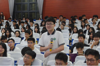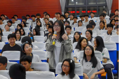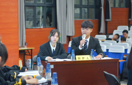 在合议庭评议期间,进入了第二个问答环节。主持人针对刚刚进行的模拟法庭准备了四个问题,同学们情绪高涨、踊跃参与。