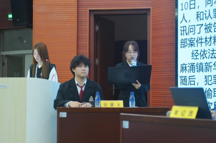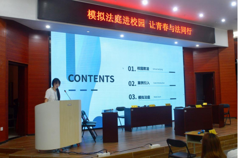 观众演绎环节,主持人随机挑选三位学生上台体验法庭演绎,切身感受法庭审判的魅力。