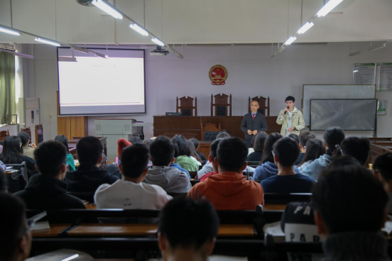 首先,安律师从“什么是法律价值和追求”这个令人深思的问题为切入点给同学们讲述了法律的含义、法律的价值以及法律的价值追求。随后,蒋老师向同学们介绍了马克思法学的五个层次,即制定、强力、利益、内容和程序。