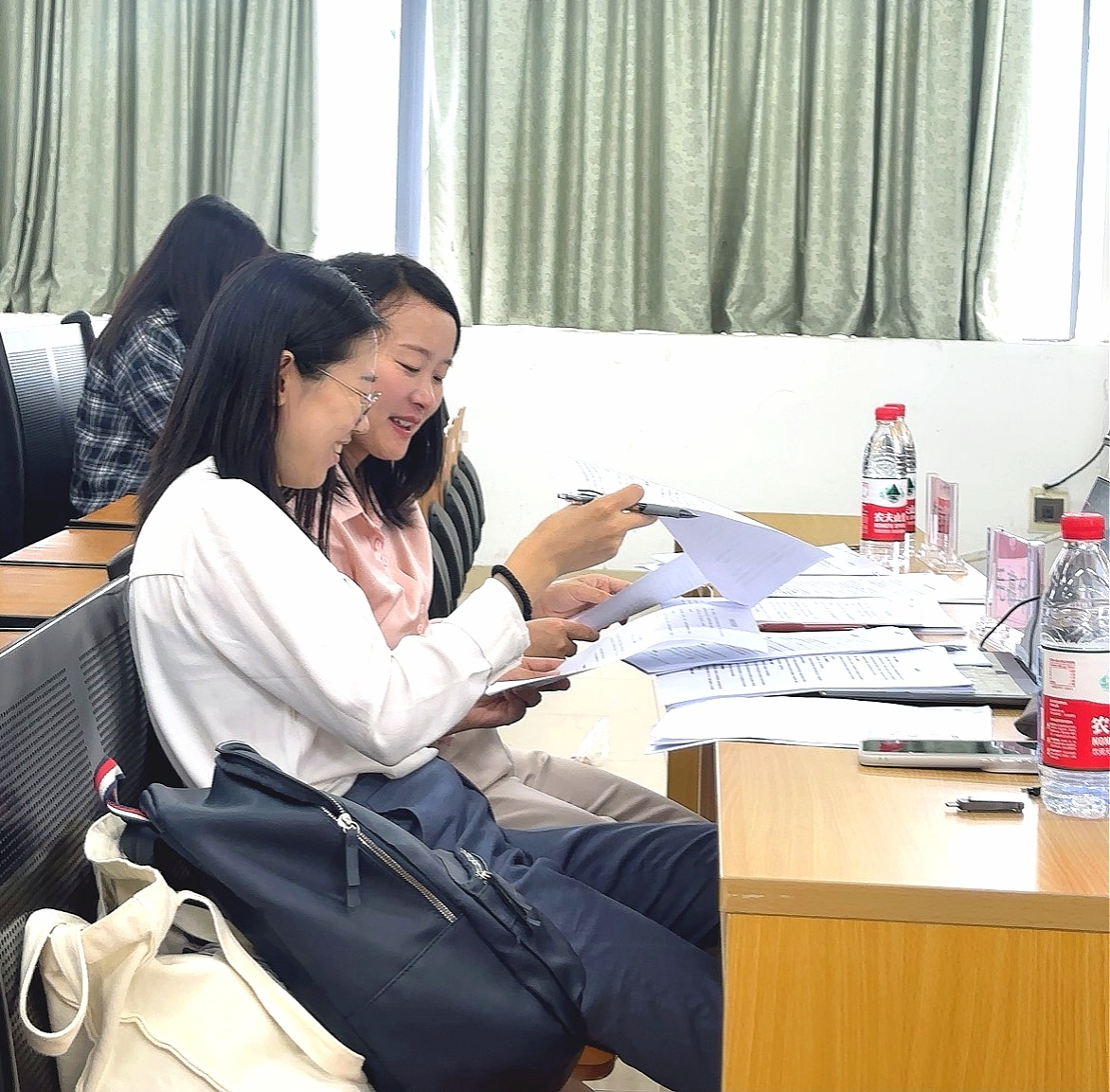 毛慕华律师与杨春梅老师一起看学生书写的仲裁文书